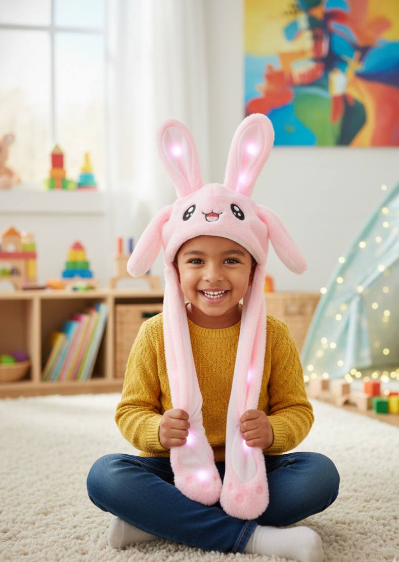 🐰 Cute • Fun • Glowing • Interactive Make every moment magical with this super-cute LED Bunny Jumping Ear Hat — press the paws and watch the ears pop & glow!